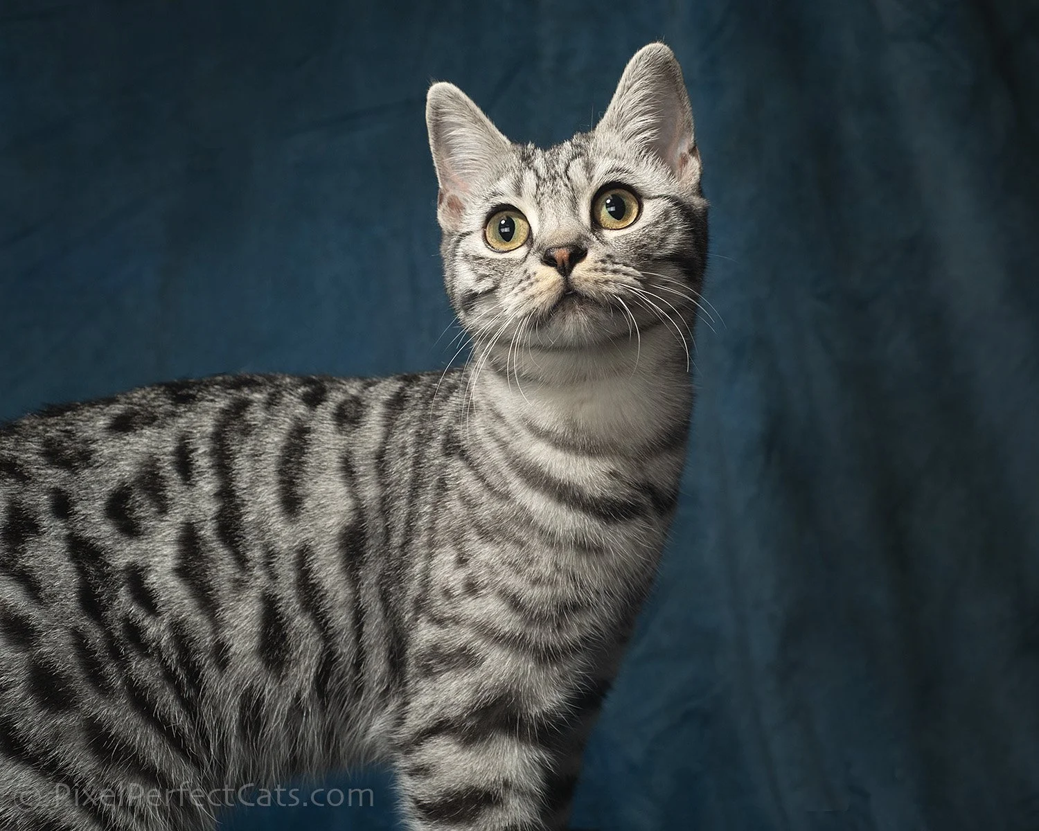 A sleek and active girl who lives life full speed ahead! Kiara is even active when she has new kittens - she loves to move them around to “interesting” spots and let you try to find them. She raises big beautiful babies and is great at teaching them to play, eat, and use the litter box quite early.